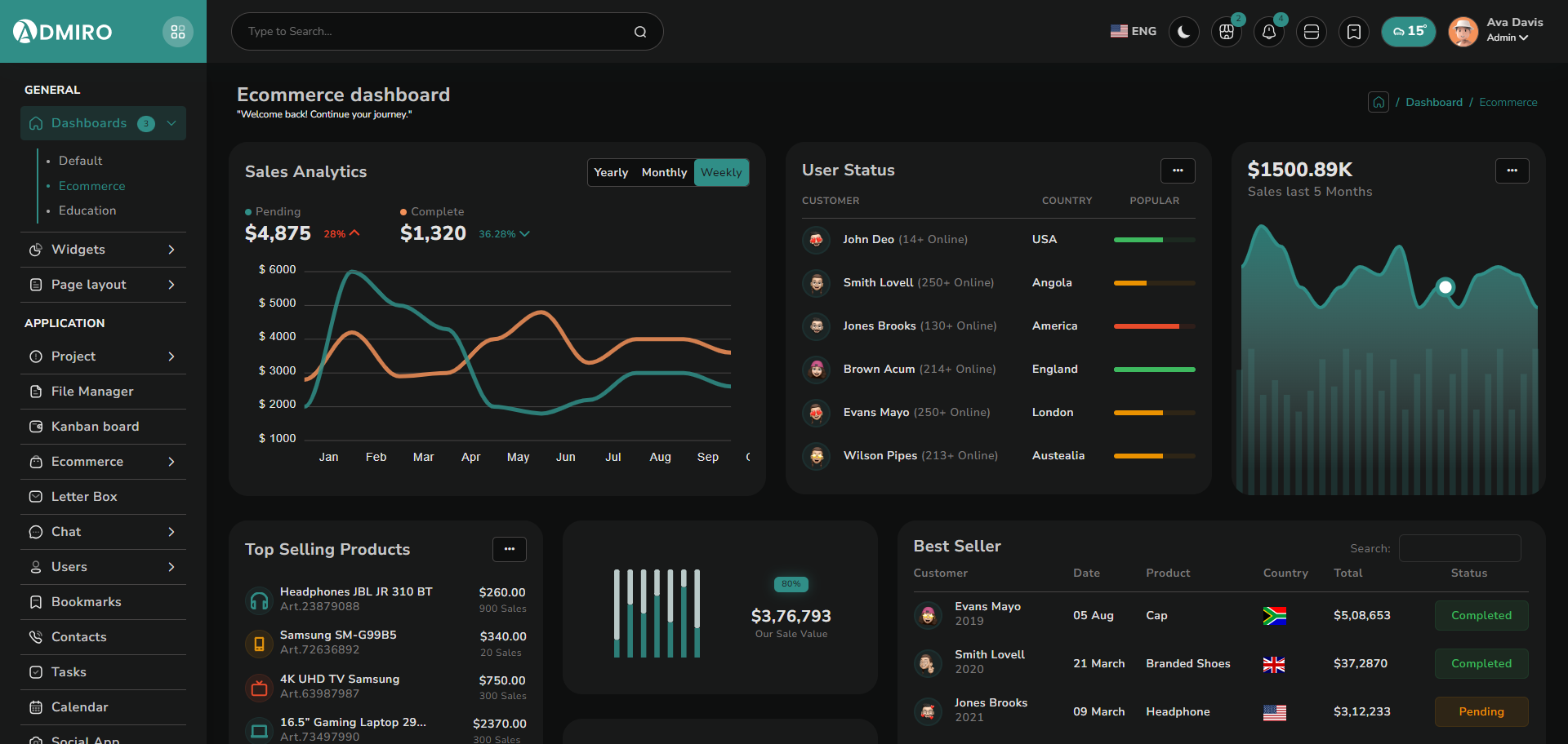 Layout escuro